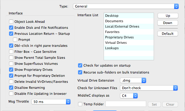 And this isn't the only Preference dialog! This is only for the general ones. Preferences for specific formats are in the Format Preferences dialog section.
