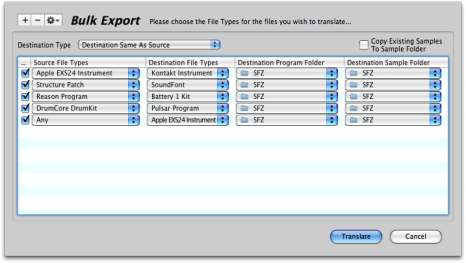 Translator 6 now has a Beat Detector, and thus has the ability to create Slice File, for playback on slice engines like Stylus RMX or other. This can also be done in bulk, so you can take (say) 1000 WAVE files and convert them into 1000 slice files without having to do them one at a time in (say) Propellerheads Recycle application.